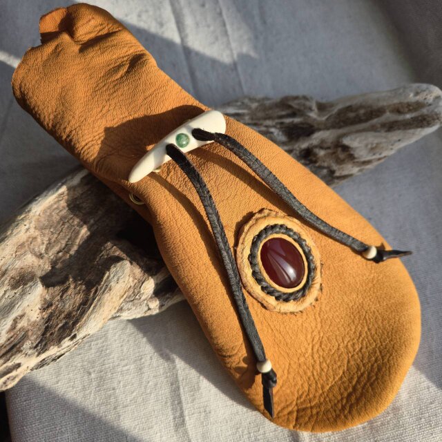 こちらは【鹿革の巾着 レッドアゲート】になります。
