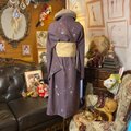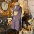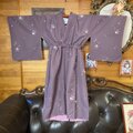 落ち着いた鳩羽色の正絹地にコマ等の遊び心を散らしたワンピース。 生成り色のサッシュベルトが、紫の系に凛とした格を与え、知的なオーラを放つ最適解です。