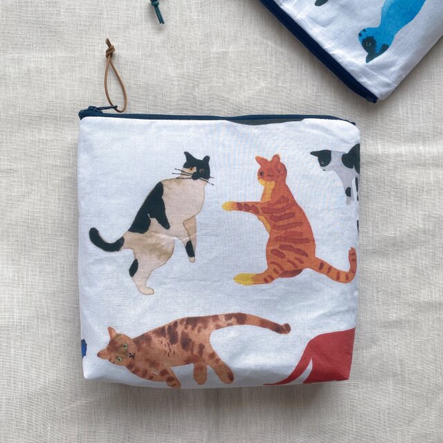 仕切り付きポーチ マルチポーチ ファスナーポーチ 母の日 誕生日 ギフトにおすすめ 大人可愛い ご褒美 猫好きさんのポーチ