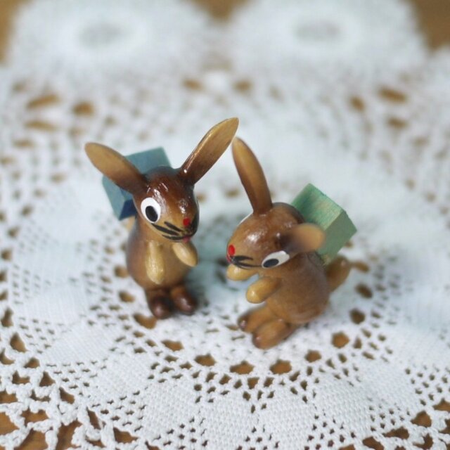 イースターオーナメント 2匹のミニミニうさぎ エルツ木工 ドイツ