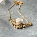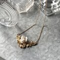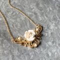 ホワイトの立体感あるローズがアクセントになったゴールドトーンのネックレス。