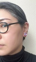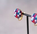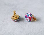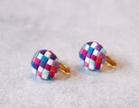 絽ざし ネジ式イヤリング 市松文様 / 絹糸のモザイクアート