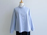 国産コットン*ゆったりシルエットのブラウス(キャンブリック生地・ブルーグレー)