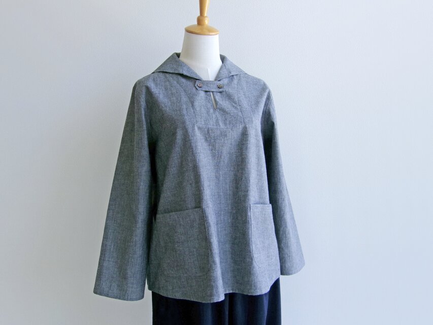 国産のコットン100%ダンガリー生地を使った、プルオーバーシャツです。春先や秋口など、気温の定まらない季節のお出かけにもぴったりです!