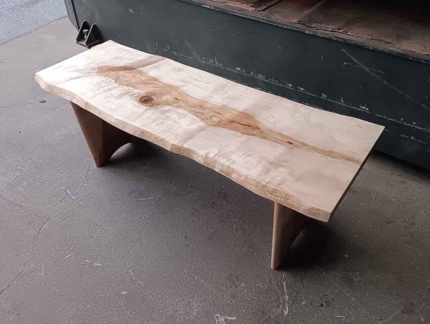 杢がある楓の一枚板を使用し、ローテーブルを作りました。