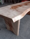 天板は両耳の付いた自然な仕上がりで、脚は板脚にし、少しテーパーを効かせて柔らかい大きな丸い面を取ってあります。