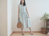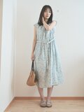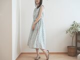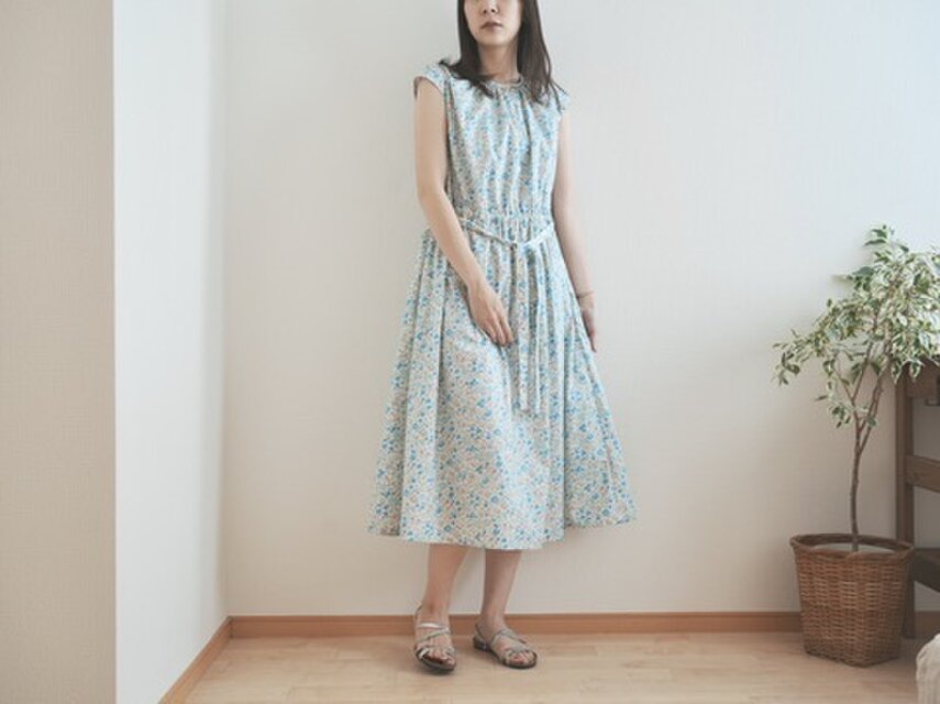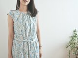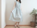 どこか懐かしい花柄のコットンフレンチワンピース ブルー No.376