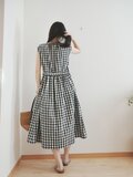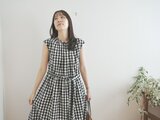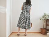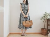 大人かわいい ブラックギンガムのコットンワンピース No.387