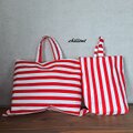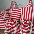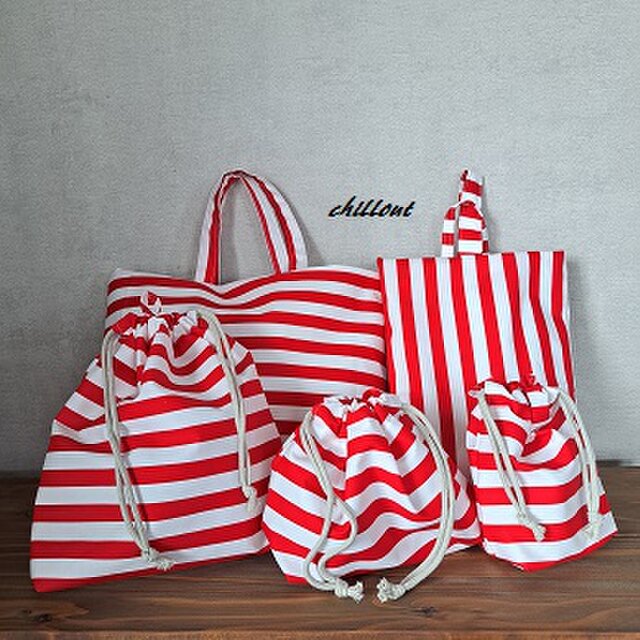 レッドストライプの入園バッグ5点セットが出来上がりました!