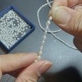 結び目をひとつずつ手で結びながら、仕立てています。