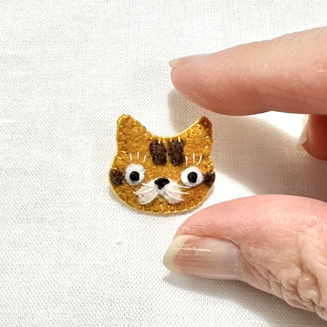 【極小2cm】フェルトの猫ブローチ⑤ 茶トラ猫 ミニチュア|大人のための、小さなお守りアクセサリー|DoudouMimi