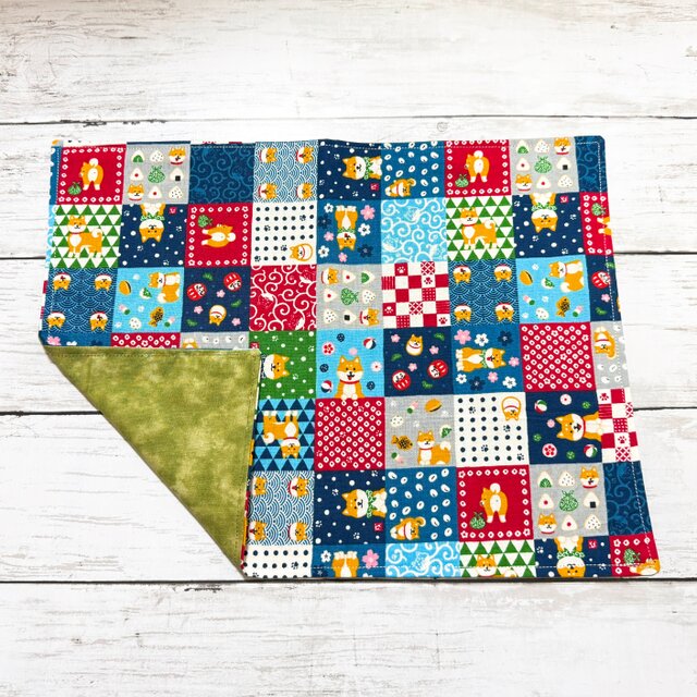 ランチョンマット小 (25×33) 【和柄・パッチワーク柄×柴犬】