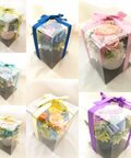 フラワーケースにリボンをお付けいたします。