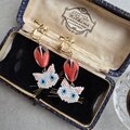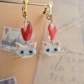 チェコガラスのハートビーズと一緒に耳元で揺れるシロ猫、どこか気まぐれで自由な猫の仕草を表現しました。