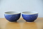 マット調のブルーを狙っていたのですが焼成時の具合や配置により、光るブルーの釉調になりました。