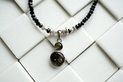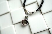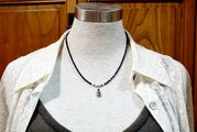 ネックレス部分は、直径2.5mm程度のボタンカット型ブラックスピネルをソフトタイプのワイヤーに通して作っています。