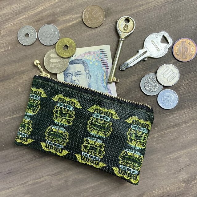 伝説の獣象『シーサー』柄の畳縁で作ったミニポーチです。