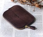 ・使用している革はスクラッチレザーと言って、表面にわざと擦りキズを施し起毛させた革になります。色の濃淡も目で見て楽しめる他、手触りもザラついた感じではなくマットでしっとりとした風合いです。オイルがたっぷり含まれた革になりますので、使っていくうちに色・艶など革の風合いが変化していきます。