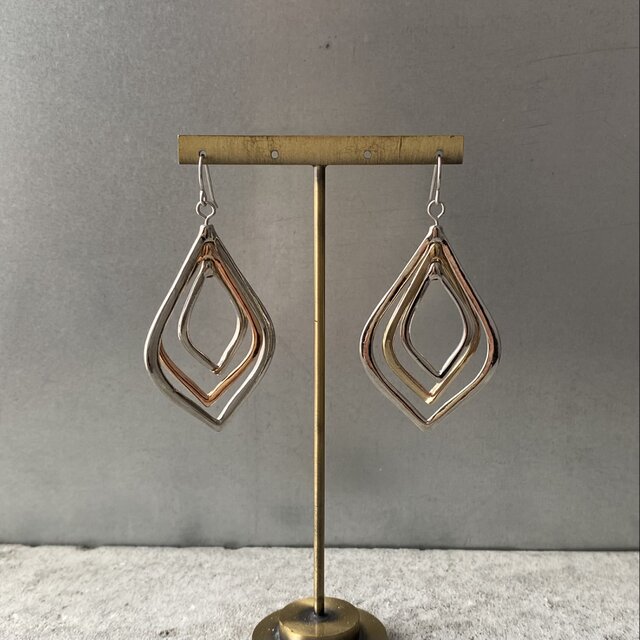 スタイリッシュなモビール風デザインのUSAヴィンテージピアス。揺れるたびにパーツが回転するユニークな作り。存在感がありスタイリングにお洒落な雰囲気をプラスしてくれます。