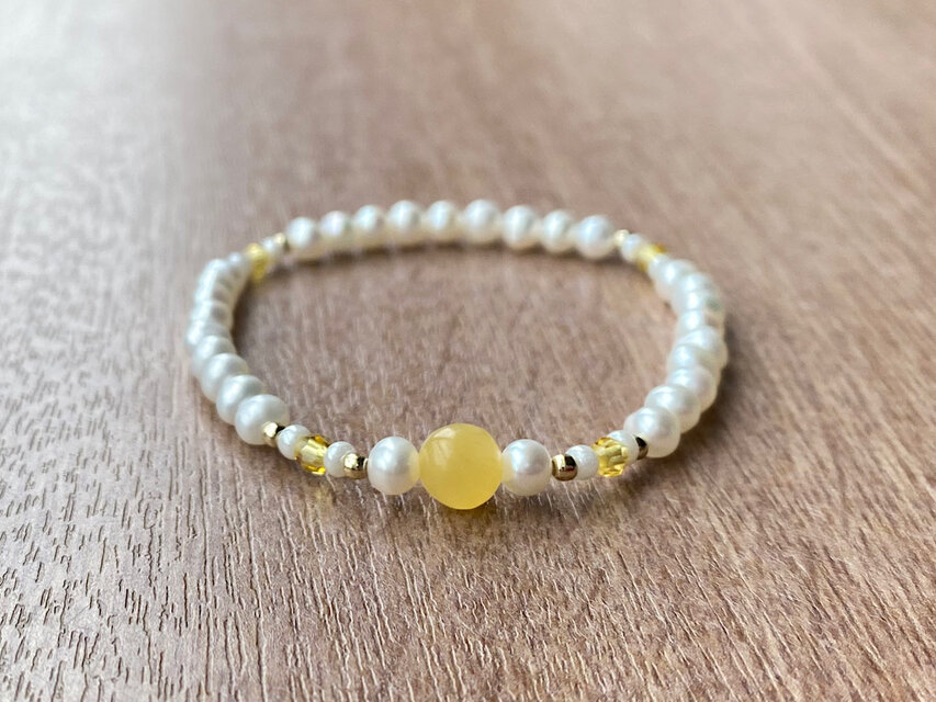 アラゴナイトと淡水パールを合わせたブレスレットです。