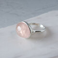 カボションカットのモルガナイトのシンプルなデザインのシルバーリングです。