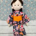 着せ替え人形の服 ㉚ 着物 <春まつ雪うさぎ>