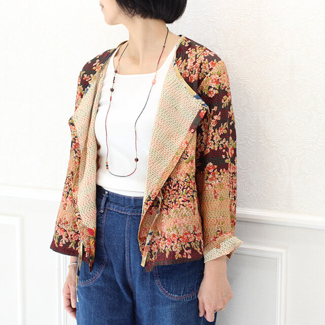 ★インドのカンタ刺繍(刺し子)シルクで仕立てたブラウスジャケット。