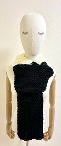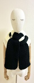 白と黒のシンプルな配色ながらも存在感があり、冬のコーデをクールに引き締めます。