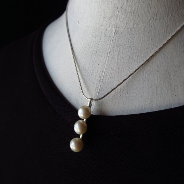 3粒の淡水パール・フォーマルにもデイリーにも使える小さめネックレス