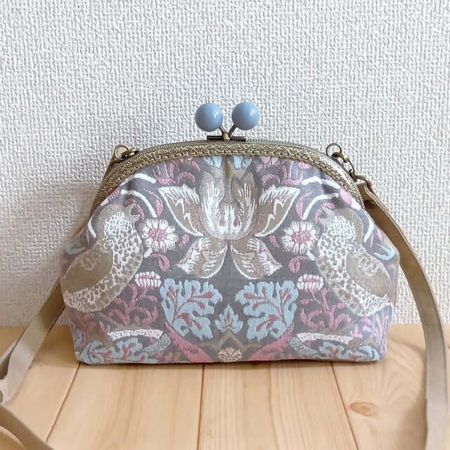 スペインのファブリックメーカー「AS Fabrics」のウィリアムモリスの生地を使用して製作した、がま口ショルダーバッグです。