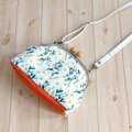 花柄に刺繍された生地を使用した、がま口ショルダーバッグです。