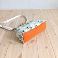 地のカラーは生成り色で、可憐なとても可愛い刺繍生地に、オレンジの帆布を合わせました。
