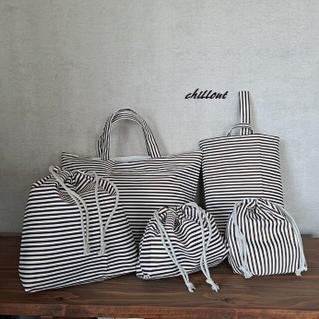ブラウンストライプの入園バッグ5点セットが出来上がりました!