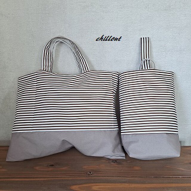 ブラウンストライプ×ブラウンの切替2点入園セットができあがりました。