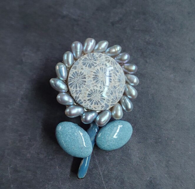 フォッシルコーラルと真珠と七宝焼きの