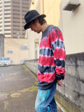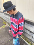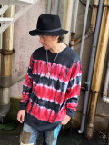 タイダイ 長袖Tシャツ XXLサイズ ブラック×レッド ボーダー HIPPIES DYE HD25-60
