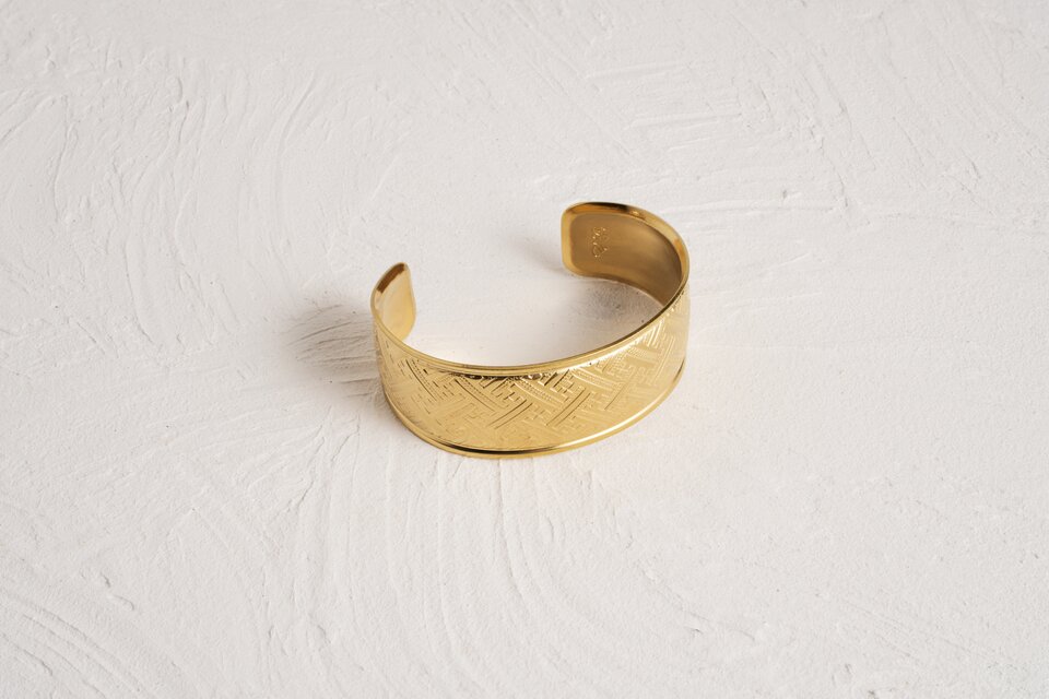 錺金具の装飾技術を活かし、日本の伝統模様をあしらったバングルです。