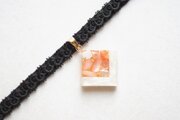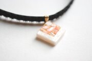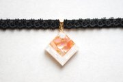 【受注製作】レジンアート スクエアモチーフとタティングレースとベルベットリボンのチョーカー〈囁き貝・コーラル〉
