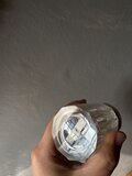 蓋にクラウンとモノグラムがデザインされたエレガントなガラスボトルです。