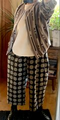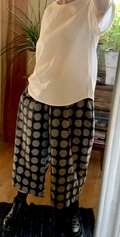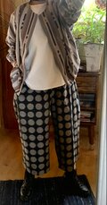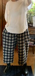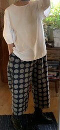 濃紺にグレーの水玉久留米絣でパンツを作りました