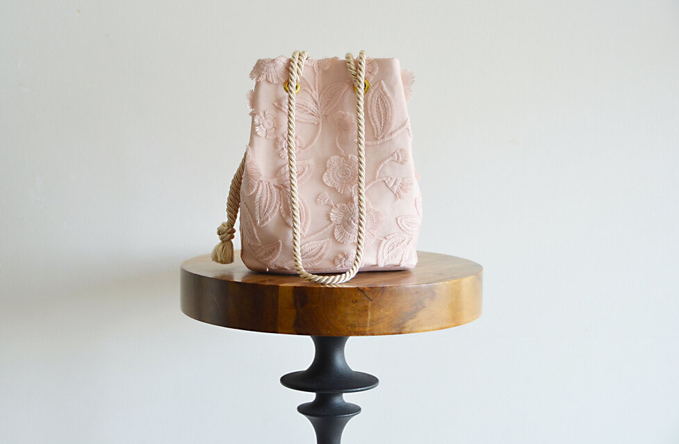 数量限定 フラワーチュール刺繍レース2Wayポシェットマリンバッグ ペールピンク フォーマルコーデにも◎