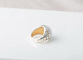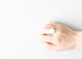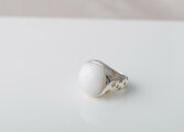 クッションカットのカボション石を、つるりとしたアームにセッティング。