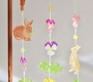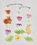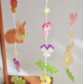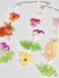 ビオラや小花が咲く野原で、野うさぎ達が日向ぼっこをしているようなモビールが出来上がりました。
