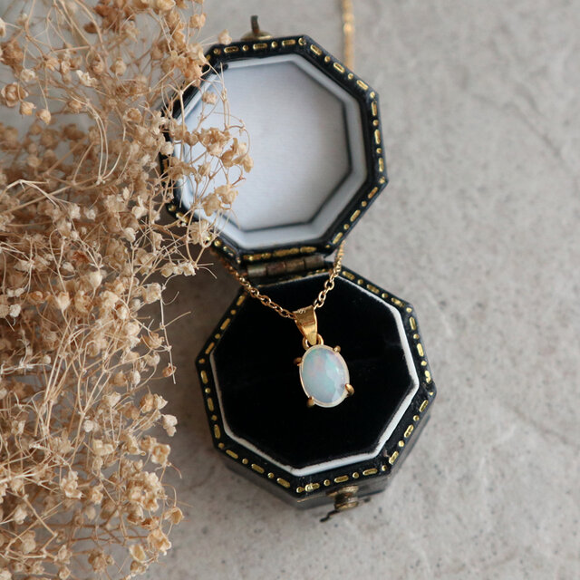 ●エチオピア産のプレシャスオパール(ウェロオパール)を使用した贅沢な一粒ネックレス。