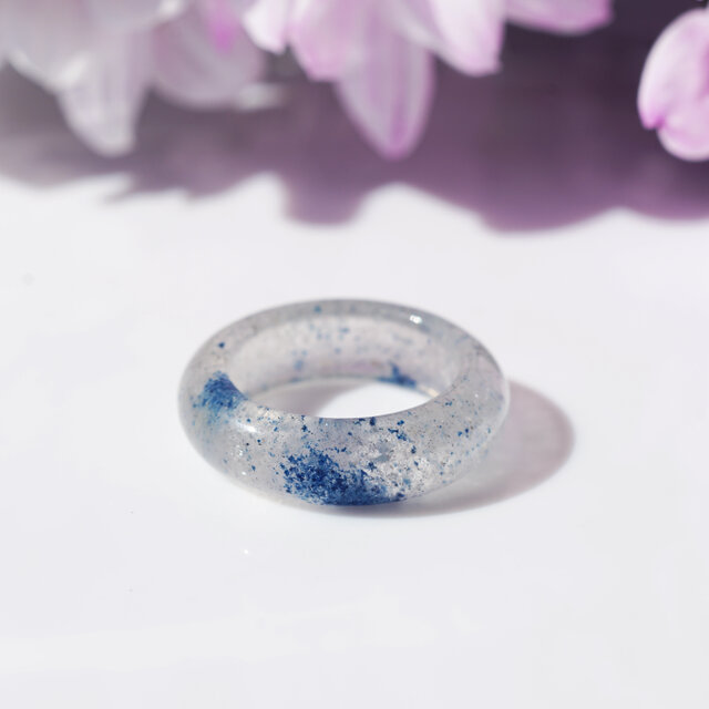 デュモルチェライト・イン・クォーツのくりぬきリング ~青の庭