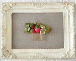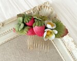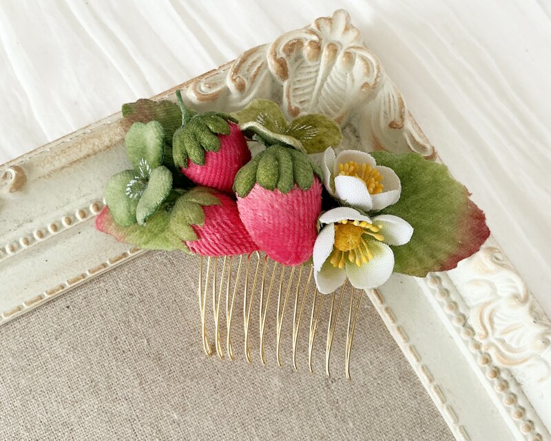 イチゴの実をメインに花や葉、クローバーをアレンジしたミニコーム。