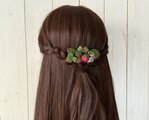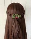 ・染め花は花びらのカット、染め、こてあて、成形、すべて手作業によるものです。多少の色むらやレース・リボンのほつれなどご理解の上、お買い上げくださいませ。また、雨や雪などによる色落ちには十分ご注意ください。