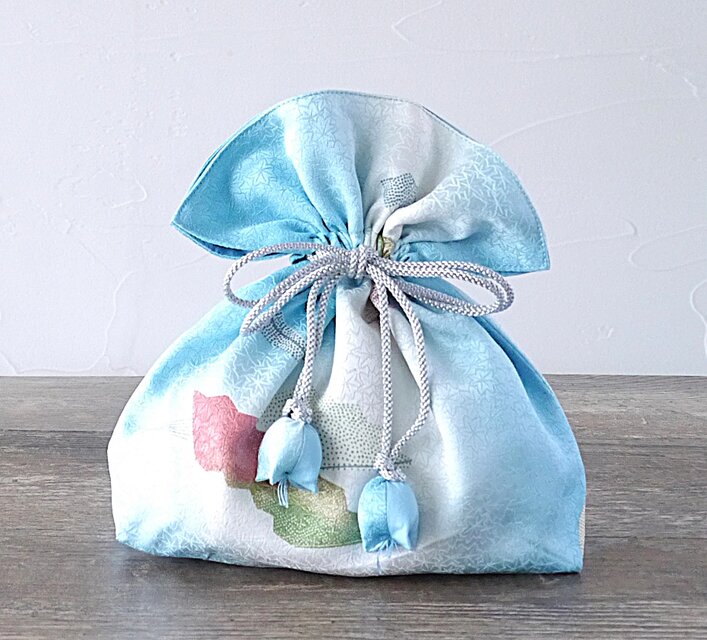 着物 巾着 幸せを呼ぶFUGURO プレミアム シルク 中サイズ