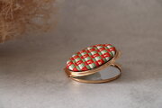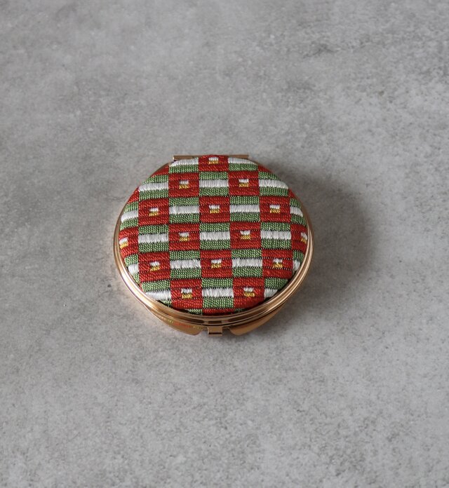 椿文様 コンパクトミラー|絽ざし 手刺繍 国産絹糸 桐箱入り 手鏡 和雑貨 ギフト