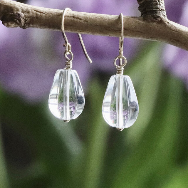 クリスタルクォーツ 一粒ピアス|透明感 上品 シンプル しずく 4月誕生石 14Kgf — Morning dew —